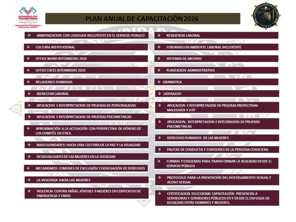 La Secretaría de Seguridad del Pueblo a través de la Universidad de Seguridad Pública del Sureste, ofrece los siguientes servicios a la ciudadanía: