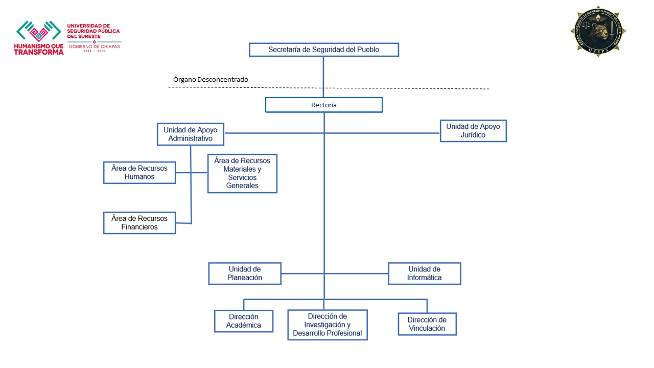 La Universidad de Seguridad Pública del Sureste , es un Órgano Desconcentrado jerárquicamente subordinado a la Secretaría de Seguridad del Pueblo, con plena autonomía administrativa, presupuestaria, técnica, de gestión y de ejecución, con facultades de decisión y promoción en materia de capacitación y adiestramiento policial.