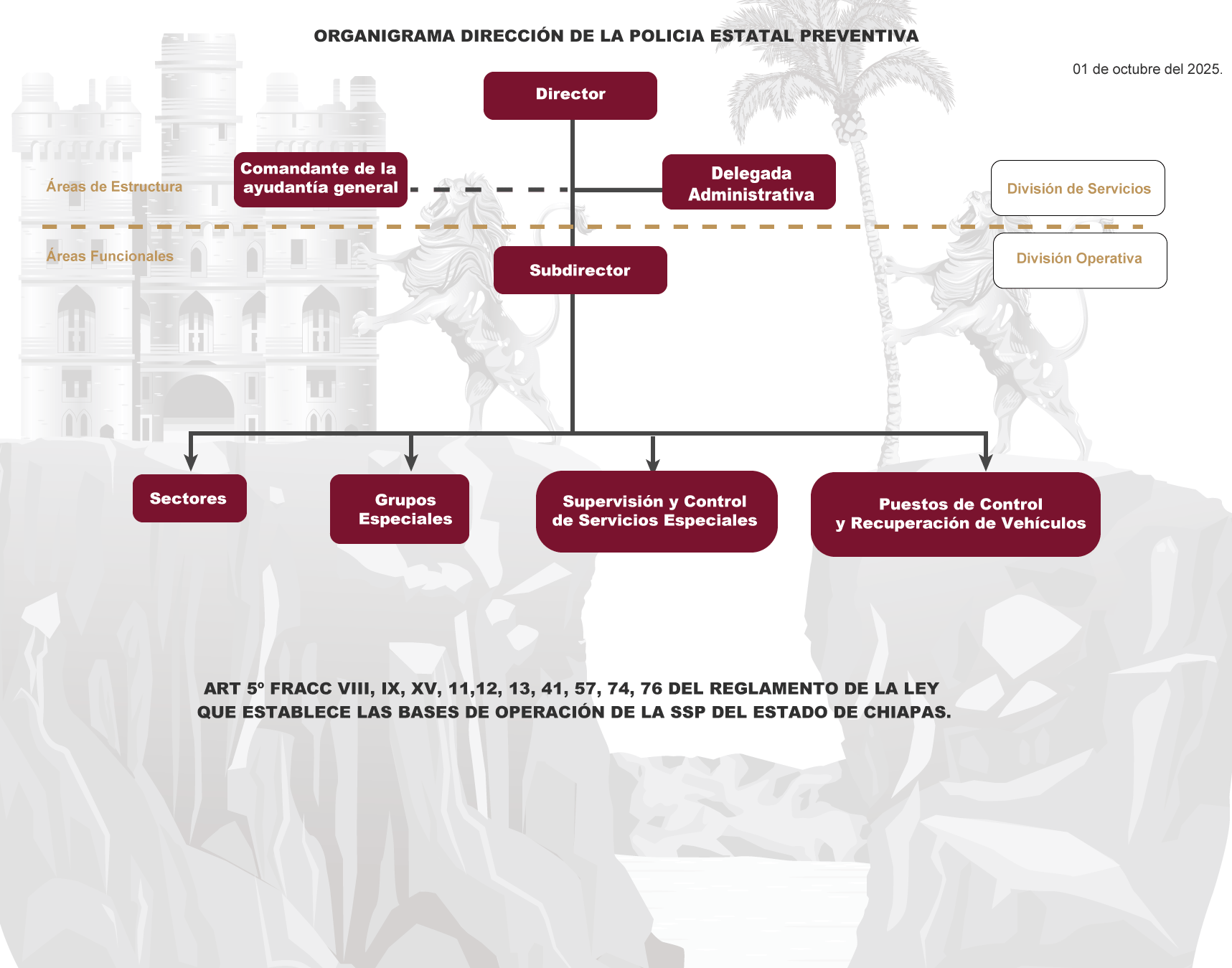 Preservar, mantener y establecer el orden, la tranquilidad y la seguridad pública en la entidad, bajo los principios de legalidad, objetividad, eficiencia, profesionalismo y honradez, con estricto apego al orden jurídico y respeto a los Derechos Humanos.